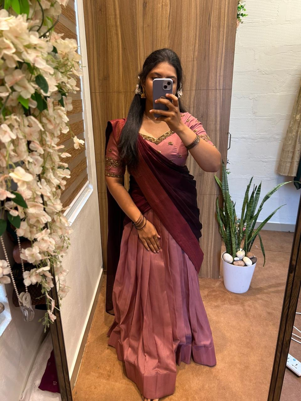 Compare ₹3,899.00 – ₹4,500.00 (inc. gst)TRADITIONAL HALF SAREE IN PEACOCK BLUE- PINK COMBO-BAQDP01