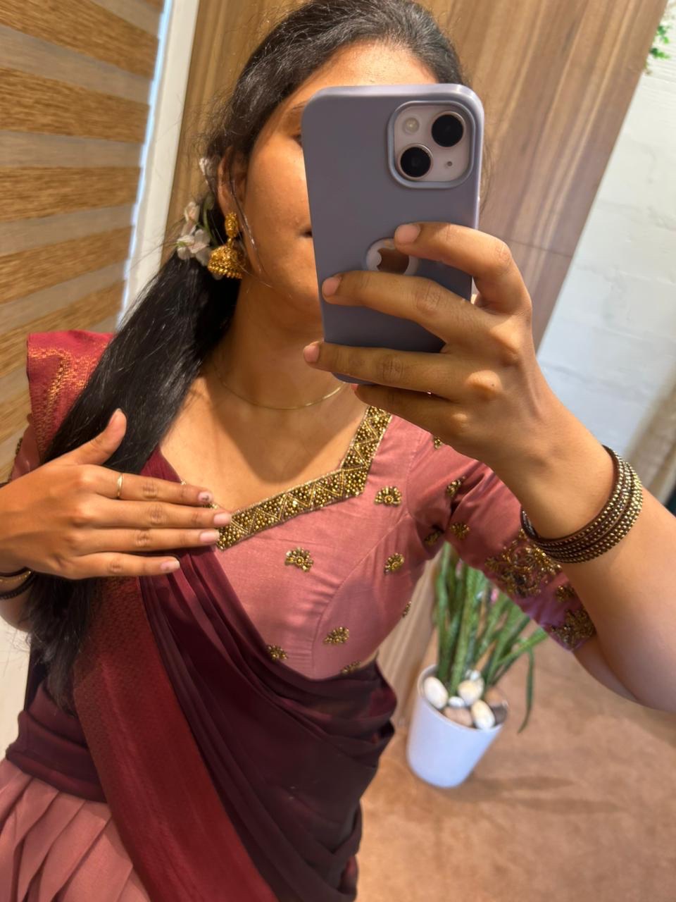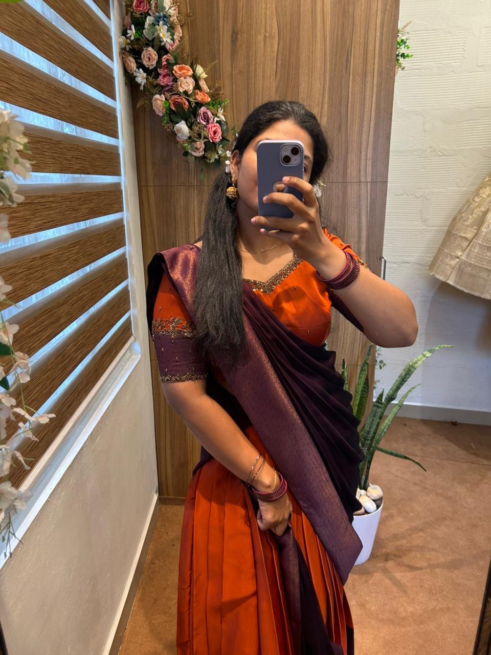 Compare ₹11,999.00 – ₹12,599.00 (inc. gst)FULLY STITCHED TRADITIONAL BRIDAL HALF SAREE -BAQWM02