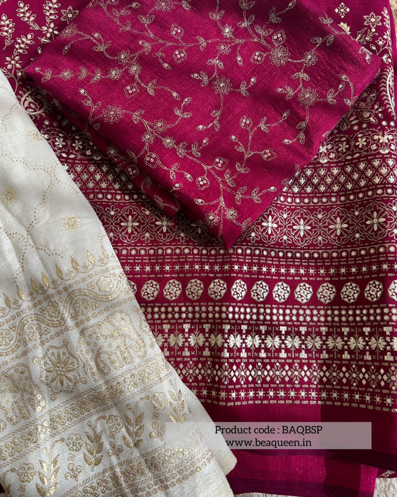 FULLY UNSTITCHED HALFSAREE MAJENTA PINK , OFF WHITE FABRIC IN BADRI SILK-BAQBSP