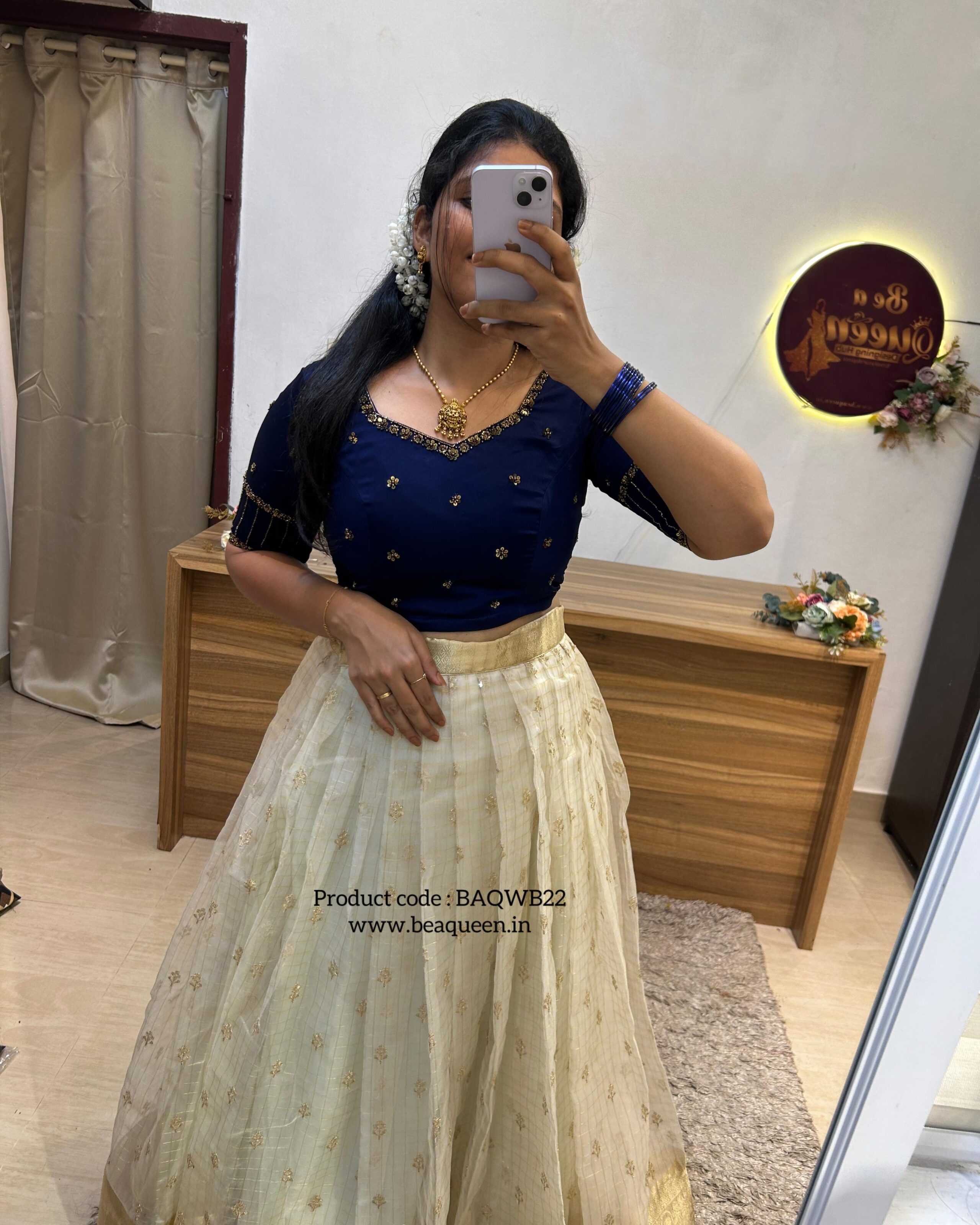 ONAM SPECIAL HALF SAREE IN OFF WHITE-DARK MAROON COMBO-BAQON06
