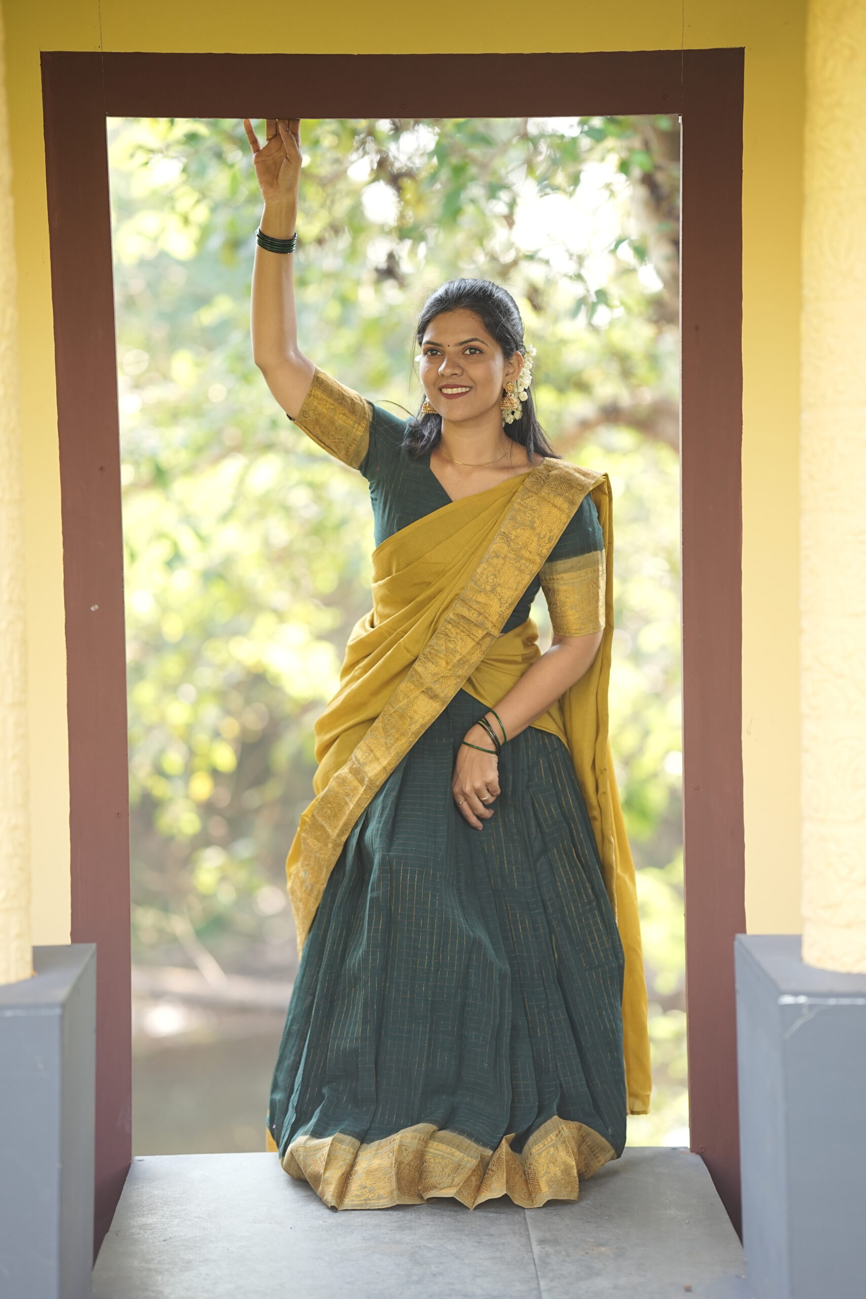 RED WITH GREEN HALFSAREE(SEMI JUTE)-BAQBR02