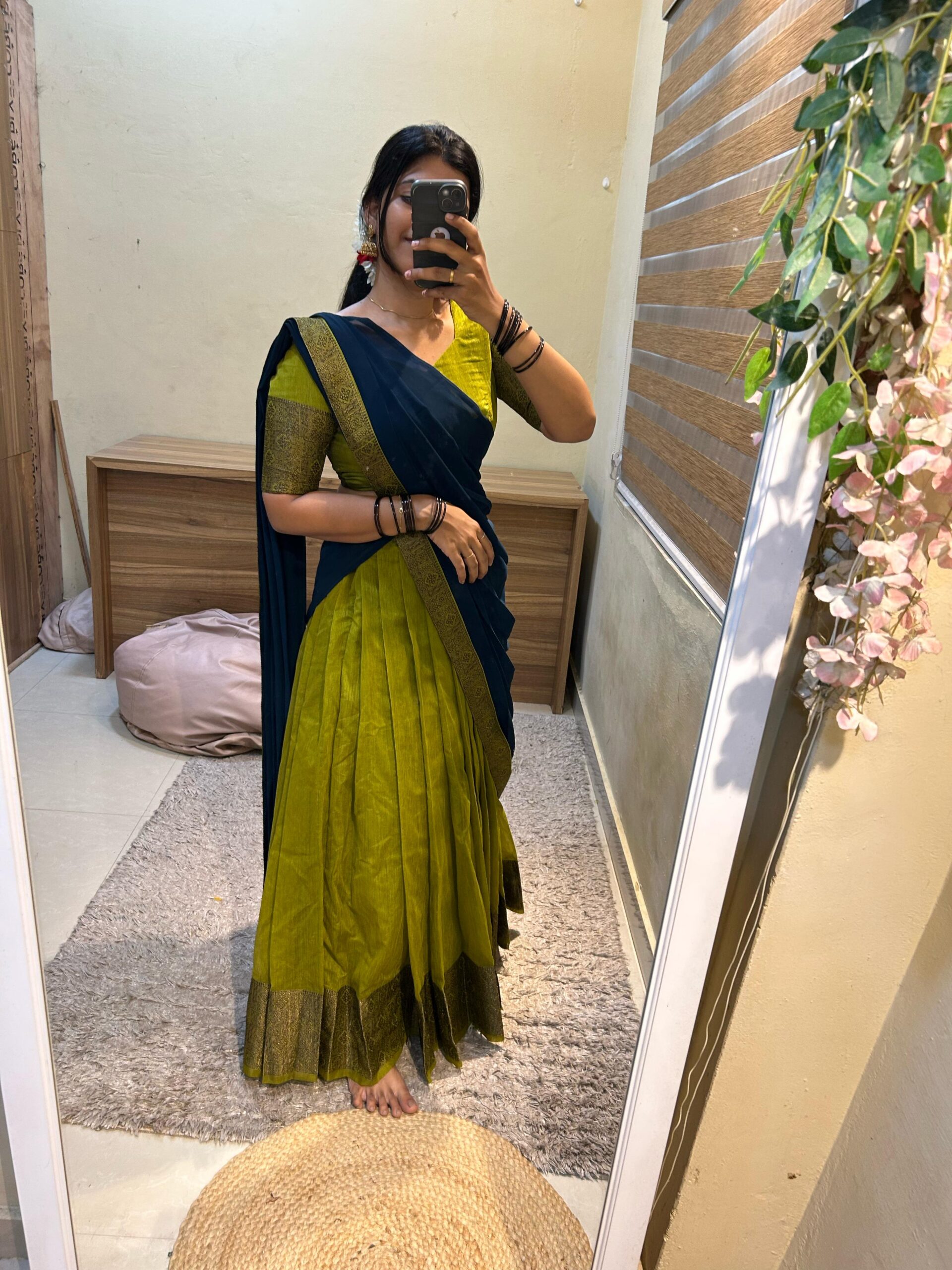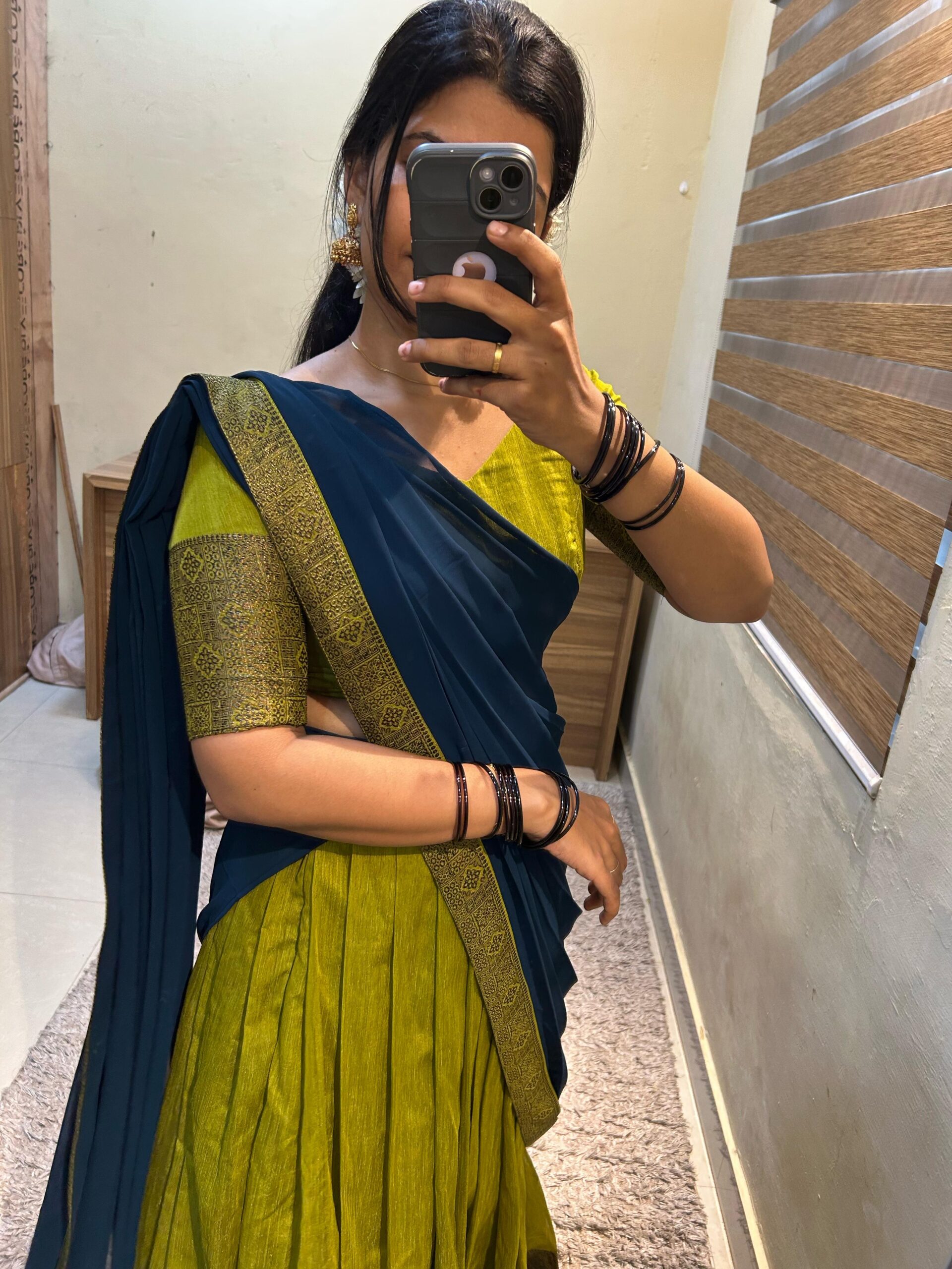 HALFSAREE IN LIGHT GREEN WITH PEACOCK BLUE