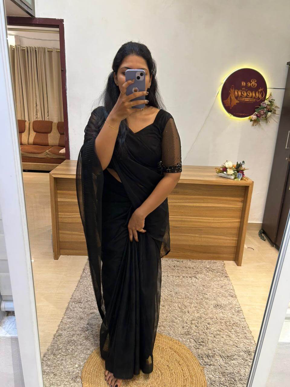 Compare Size Chart🌸 BLACK NET SAREE WITH HANDWORKED BLOUSE PIECE