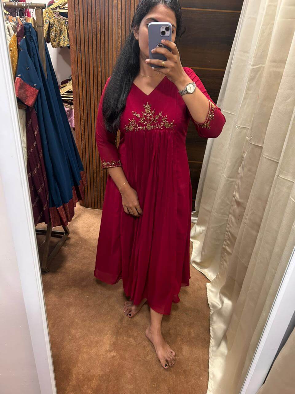 Christmas special FRONT GATHERED KURTI WITH HANDWORK-XMAS01