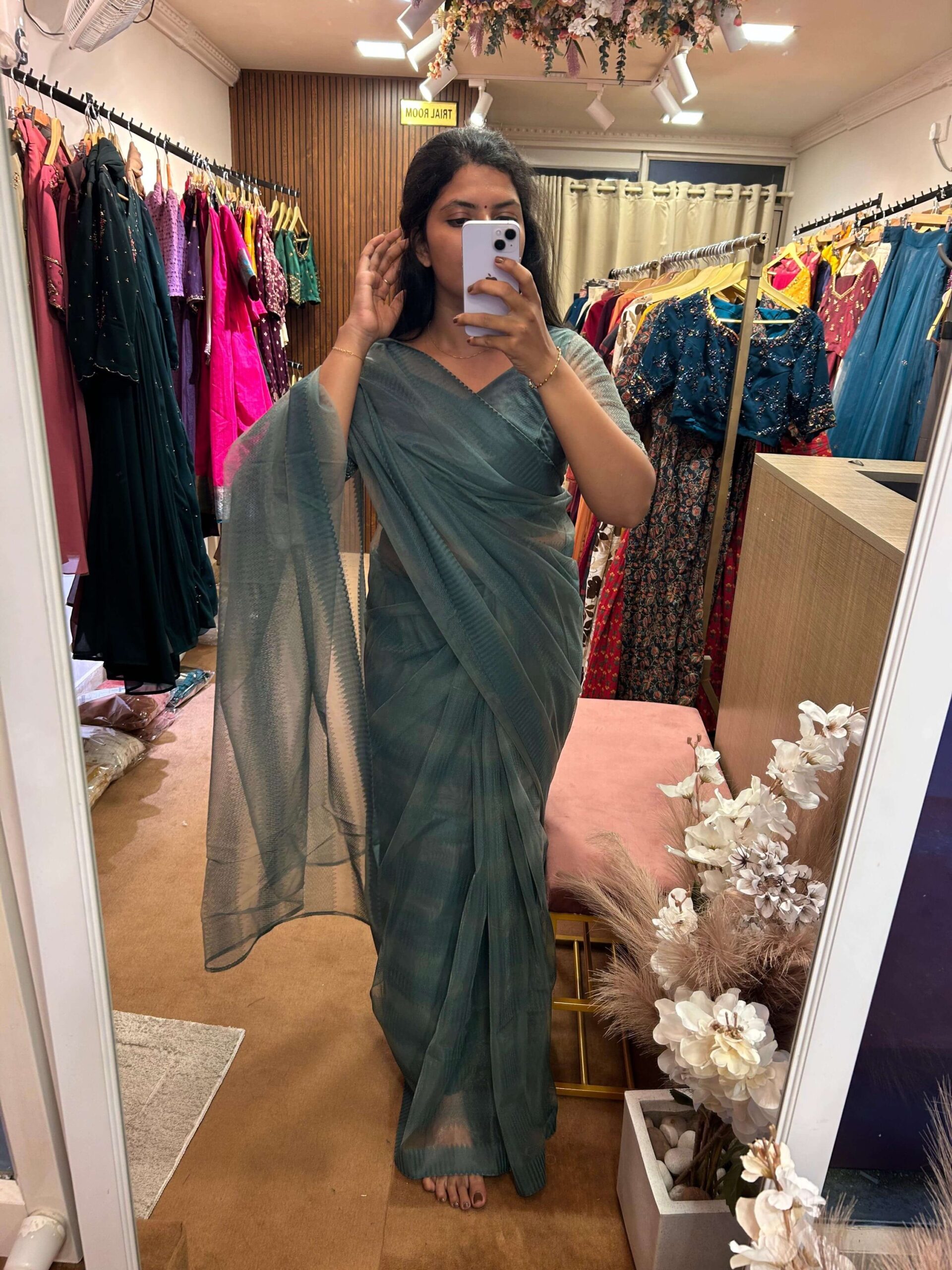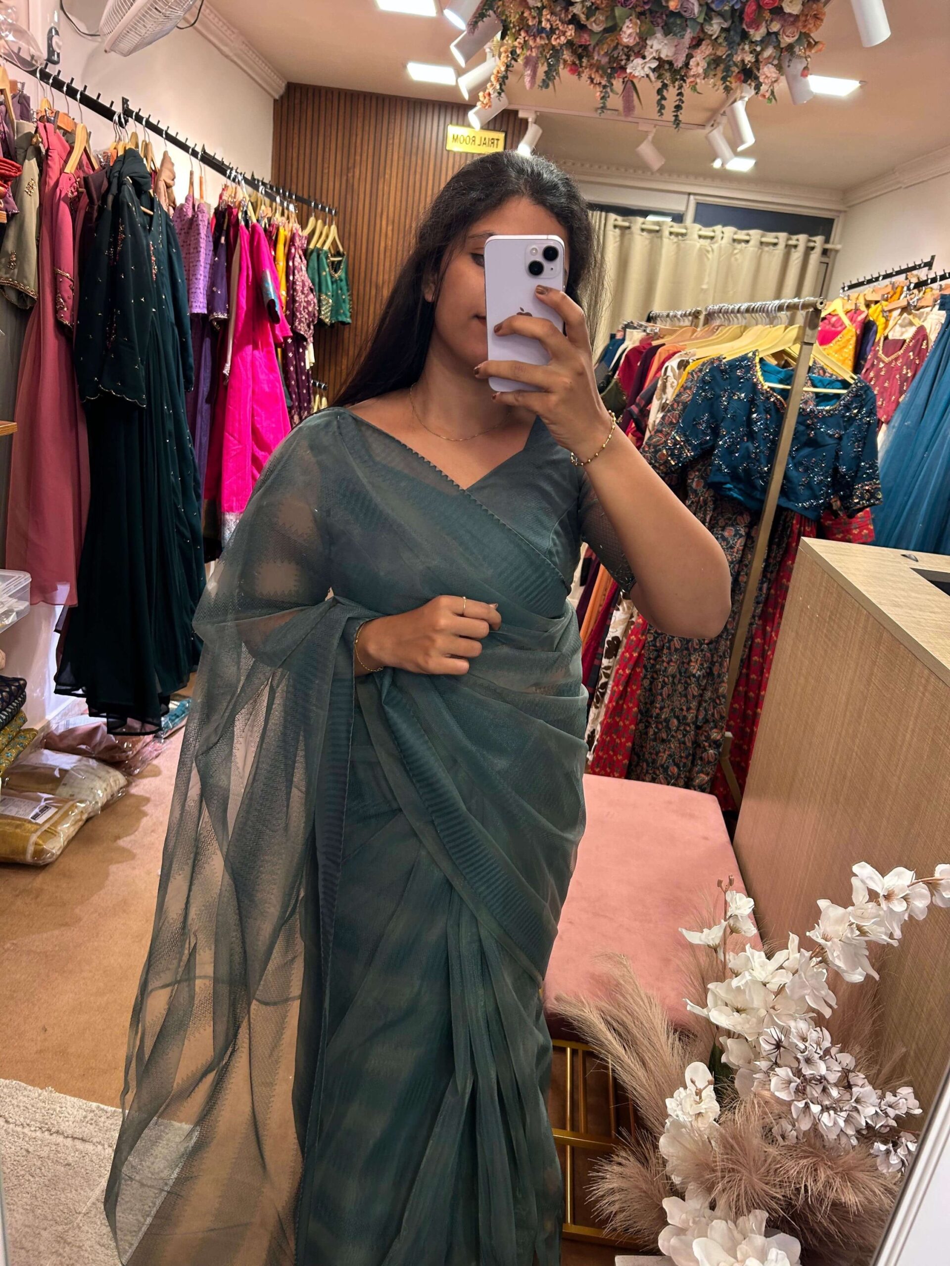 Teal Green NET SAREE WITH HANDWORKED BLOUSE PIECE-SNS20