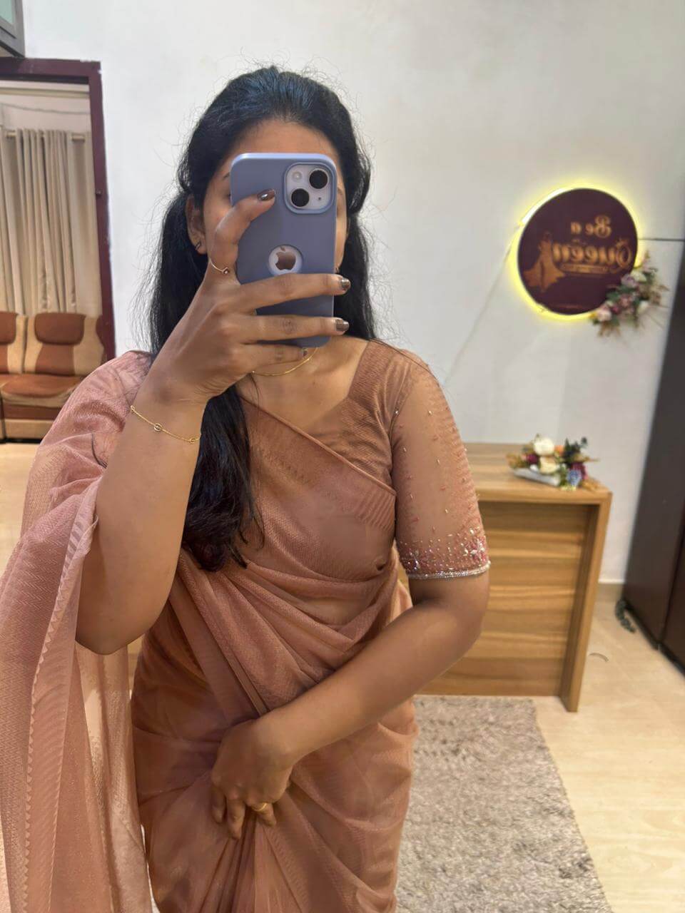 Compare Size Chart🌸 DUSTY PINK NET SAREE WITH HANDWORKED BLOUSE PIECE