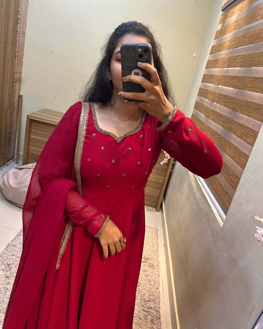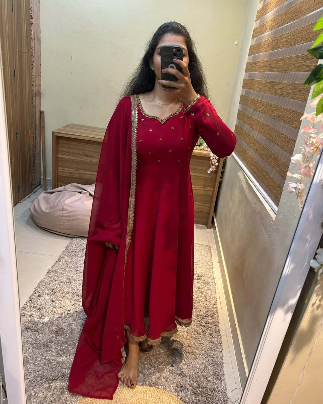 🌸 Handworked full sleeve anarkali with dupatta ; lace highlights on dupatta & anarkali 🌸