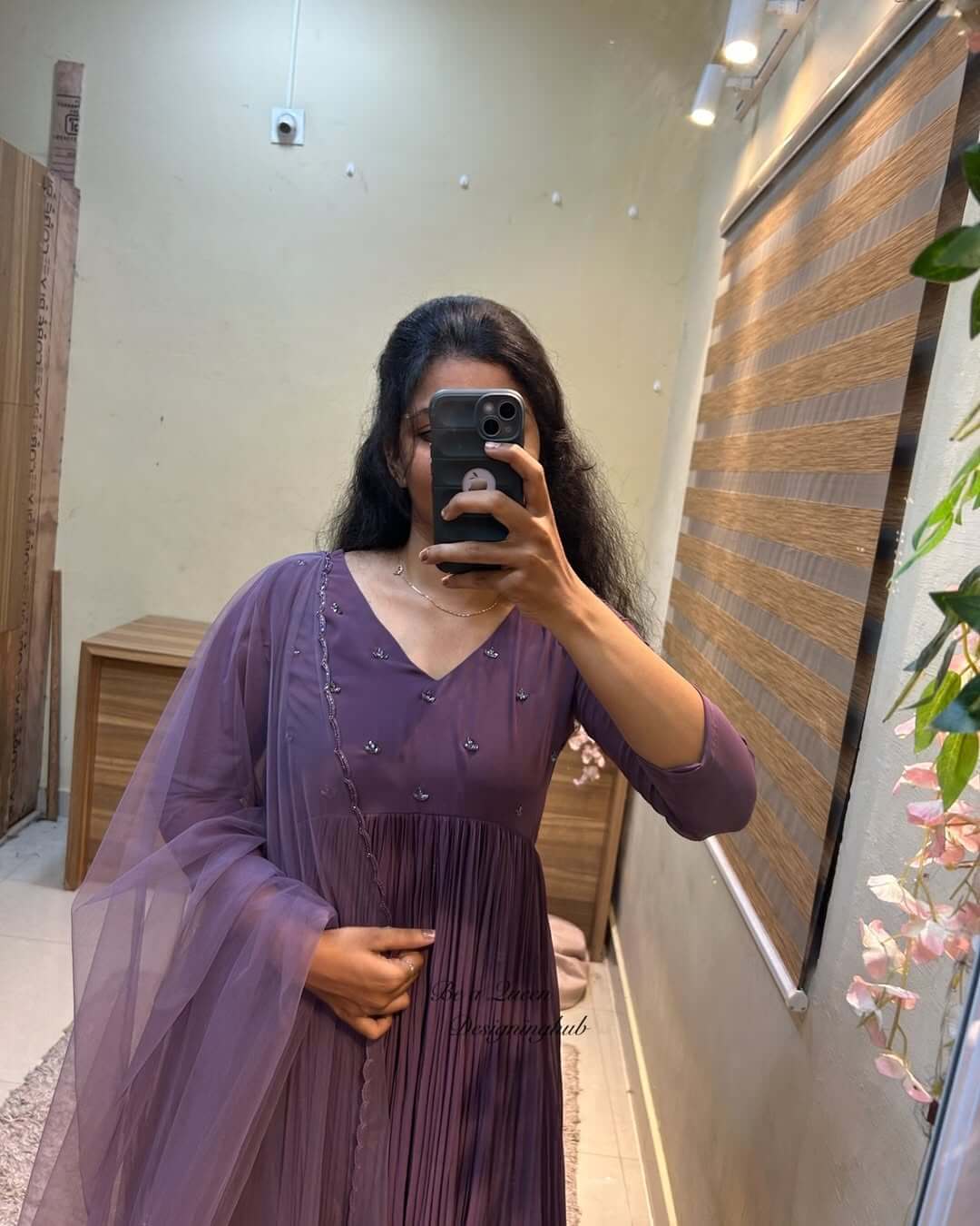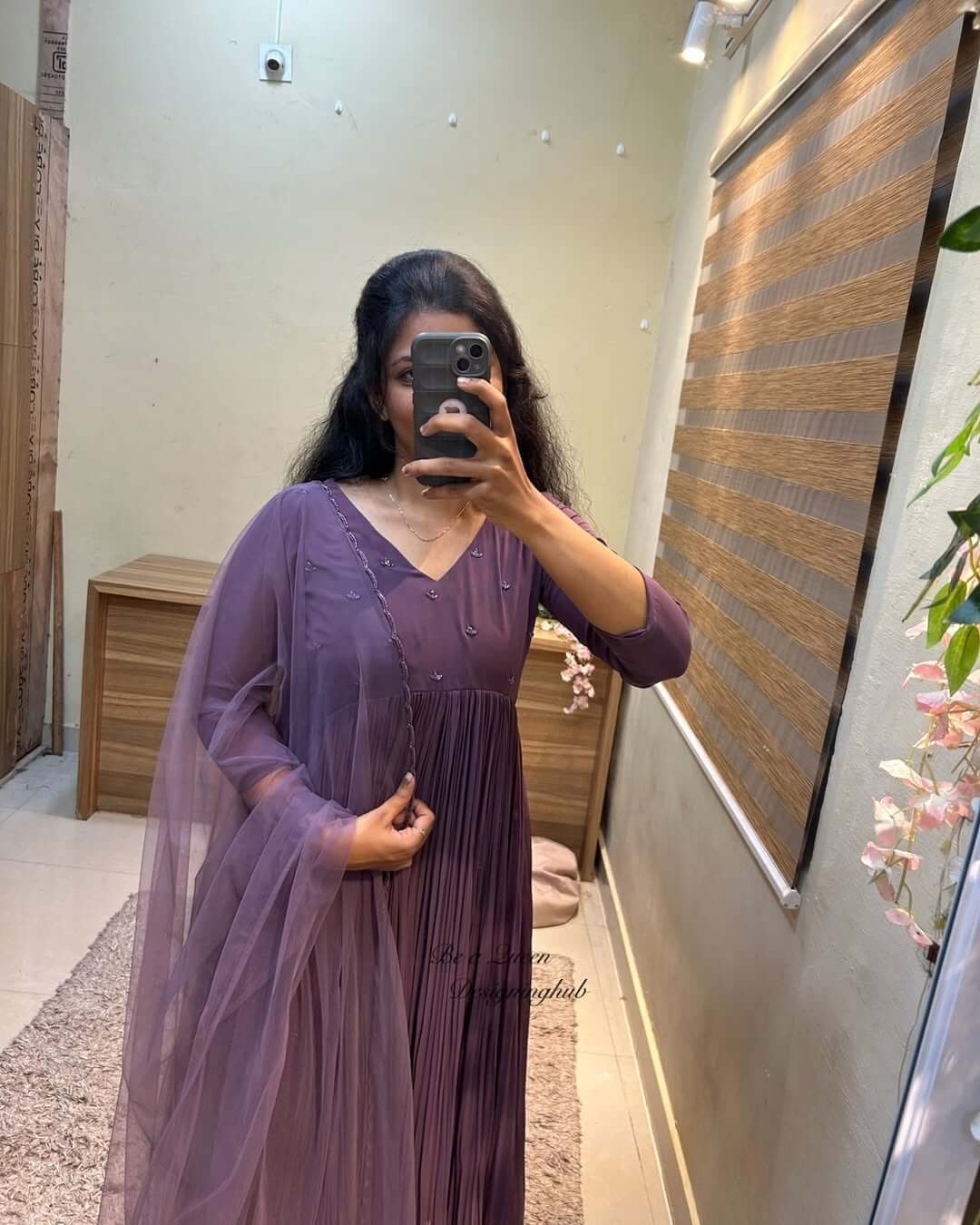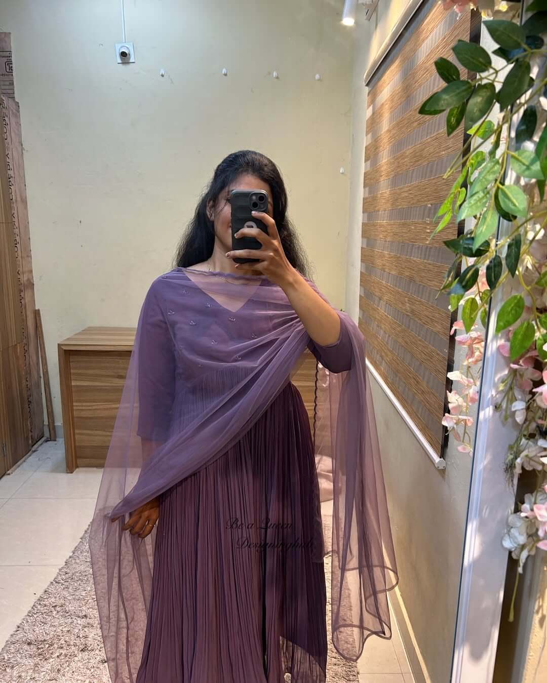 🌸Handworked Alia cut kurti with dupatta in lavender