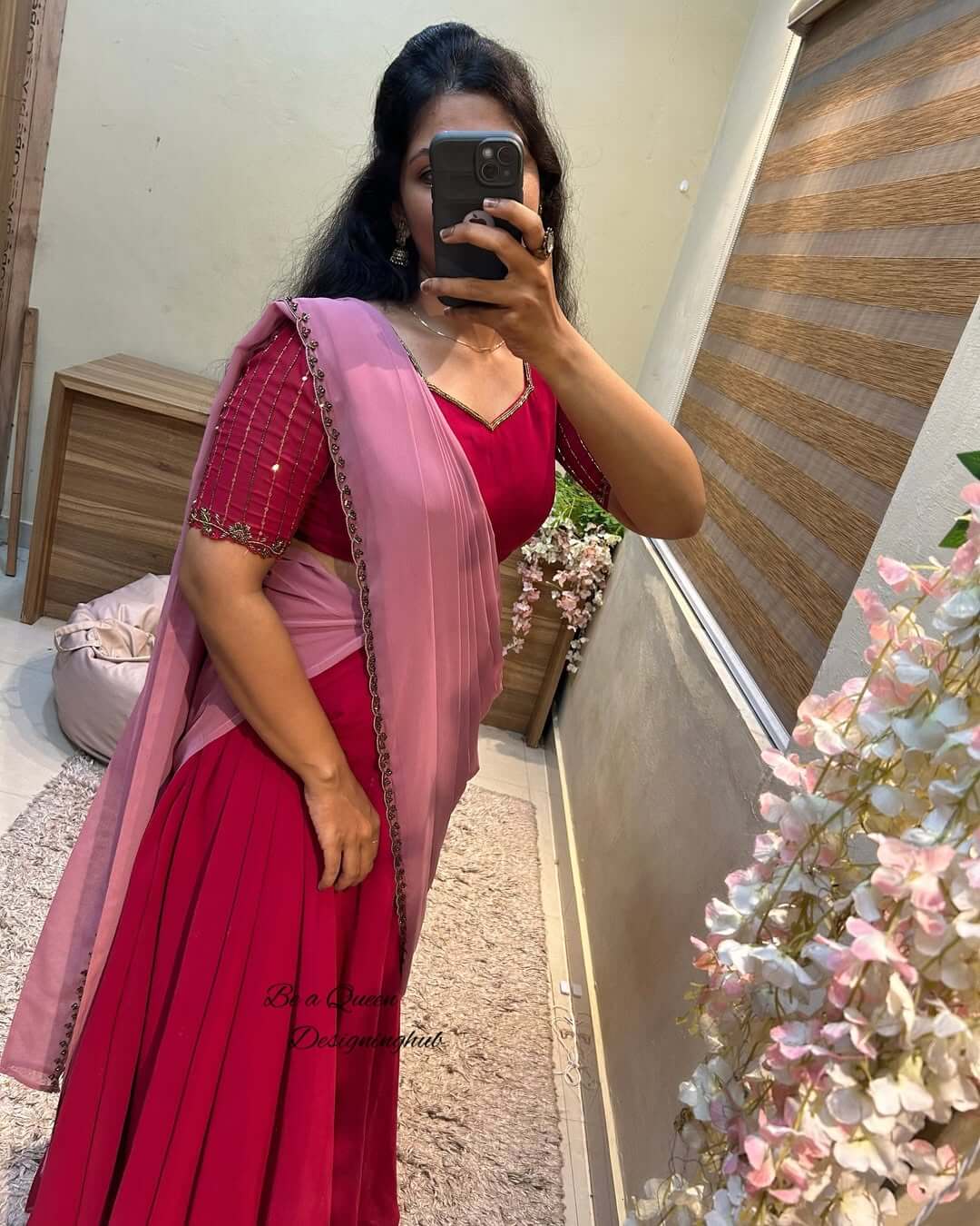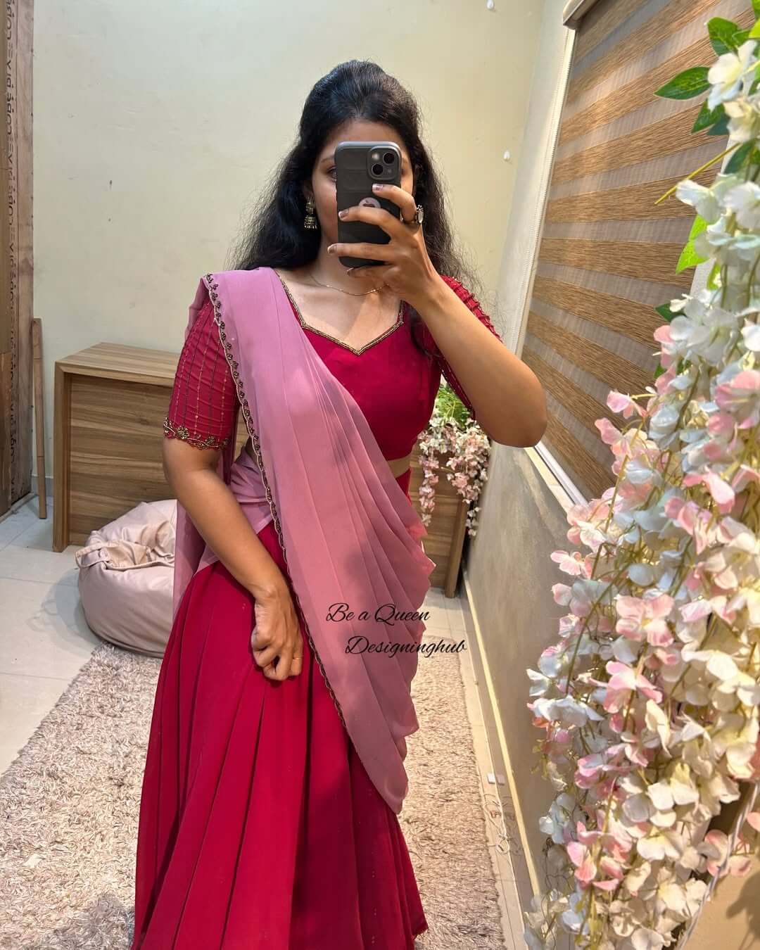 🌸 Lehenga in dark pink with light pink combination ; handworked blouse & dupatta