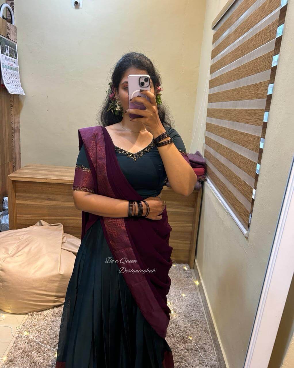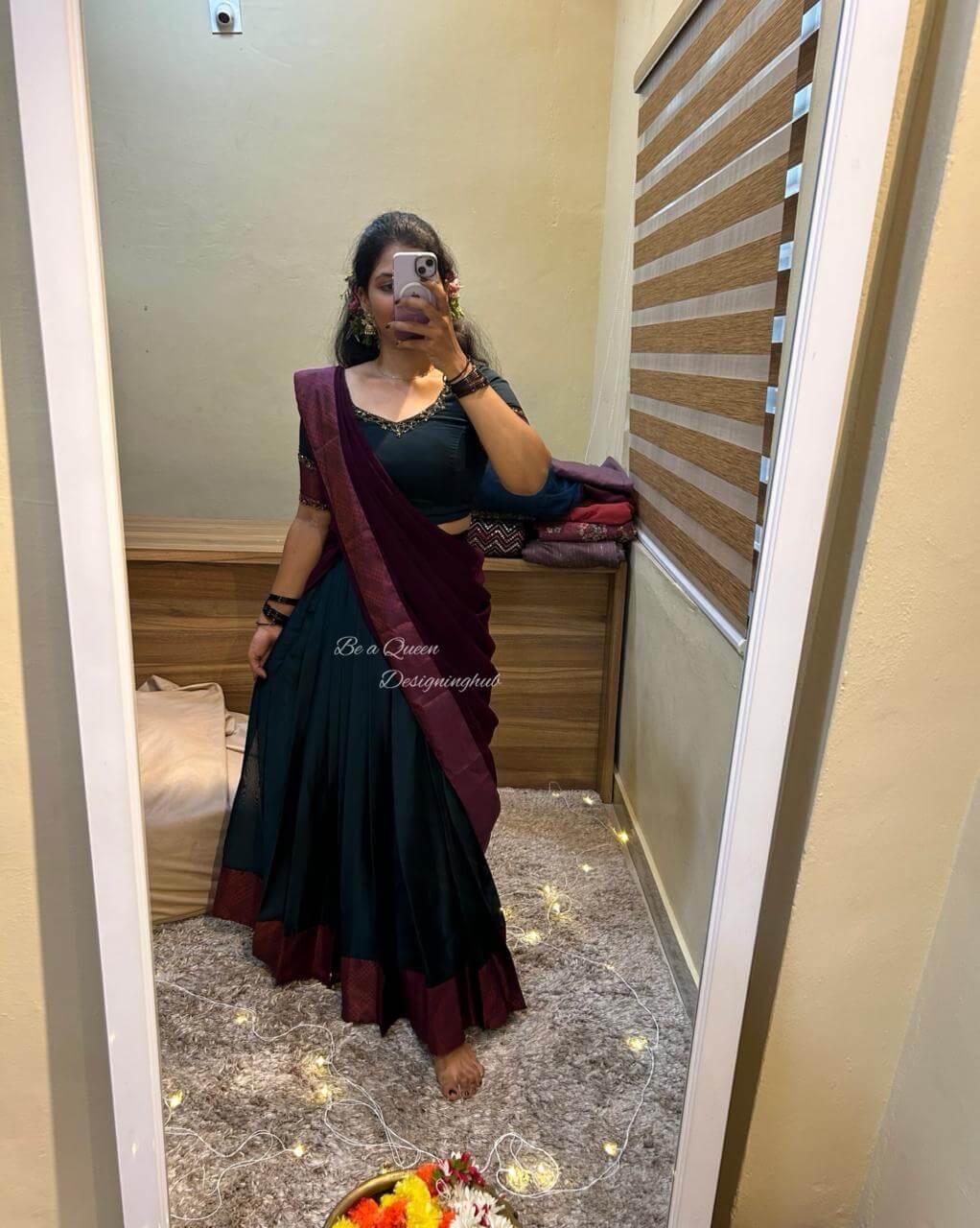 🌸TRADITIONAL HALF SAREE IN DARK GREEN – PURPLE COMBO 🌸