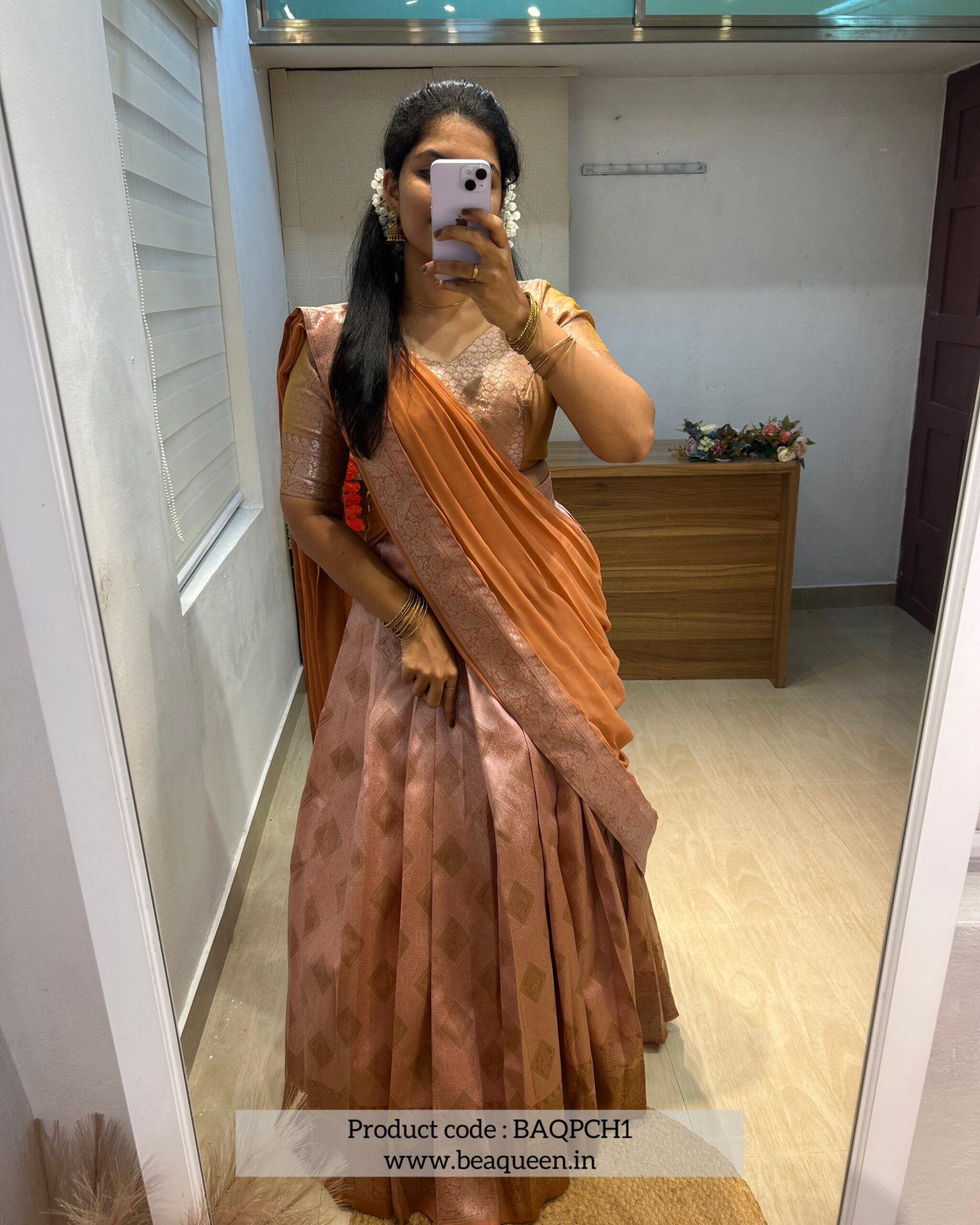 Be the first to review “TRADITIONAL BROCADE HALF SAREE PEACH-BAQPCH1”