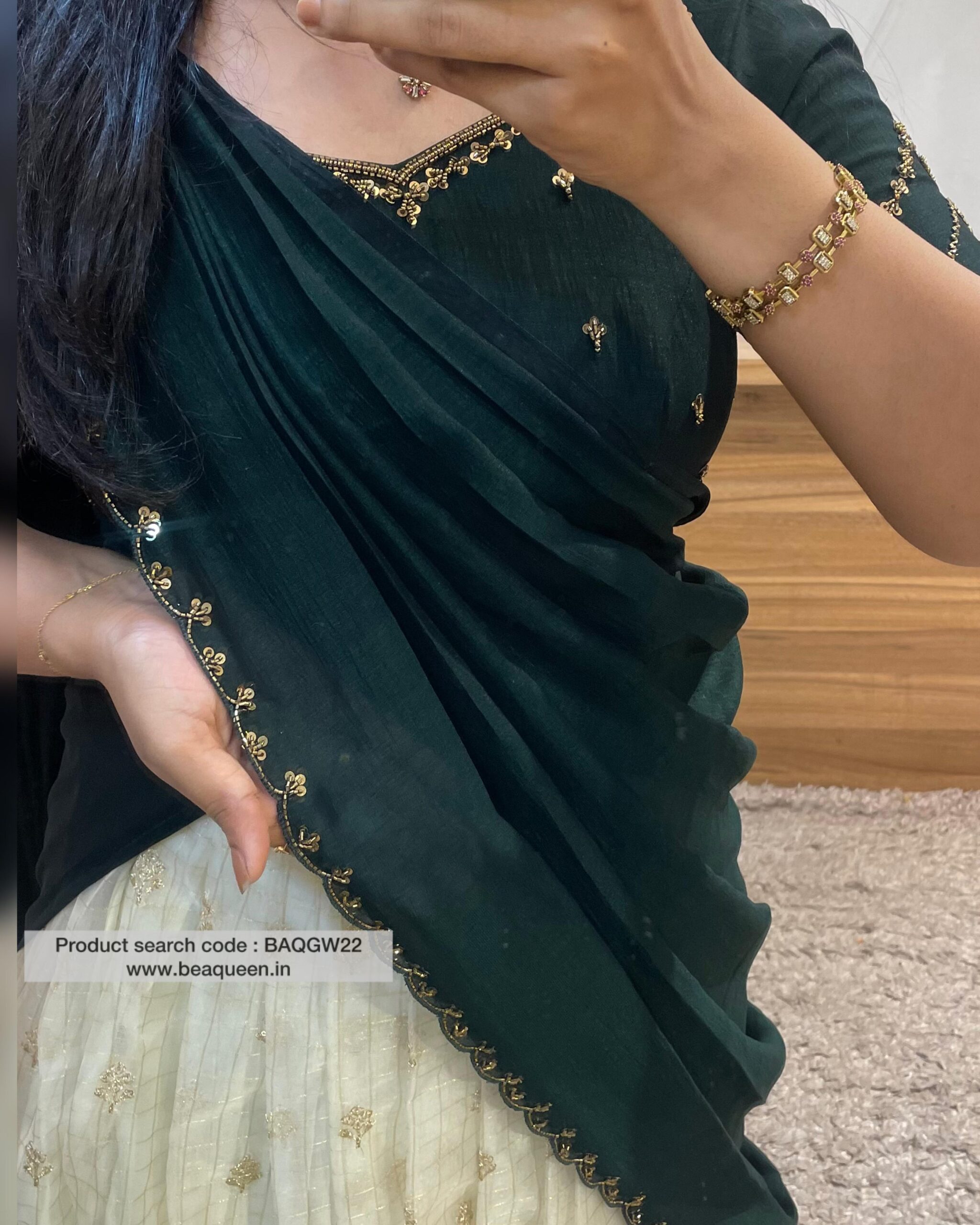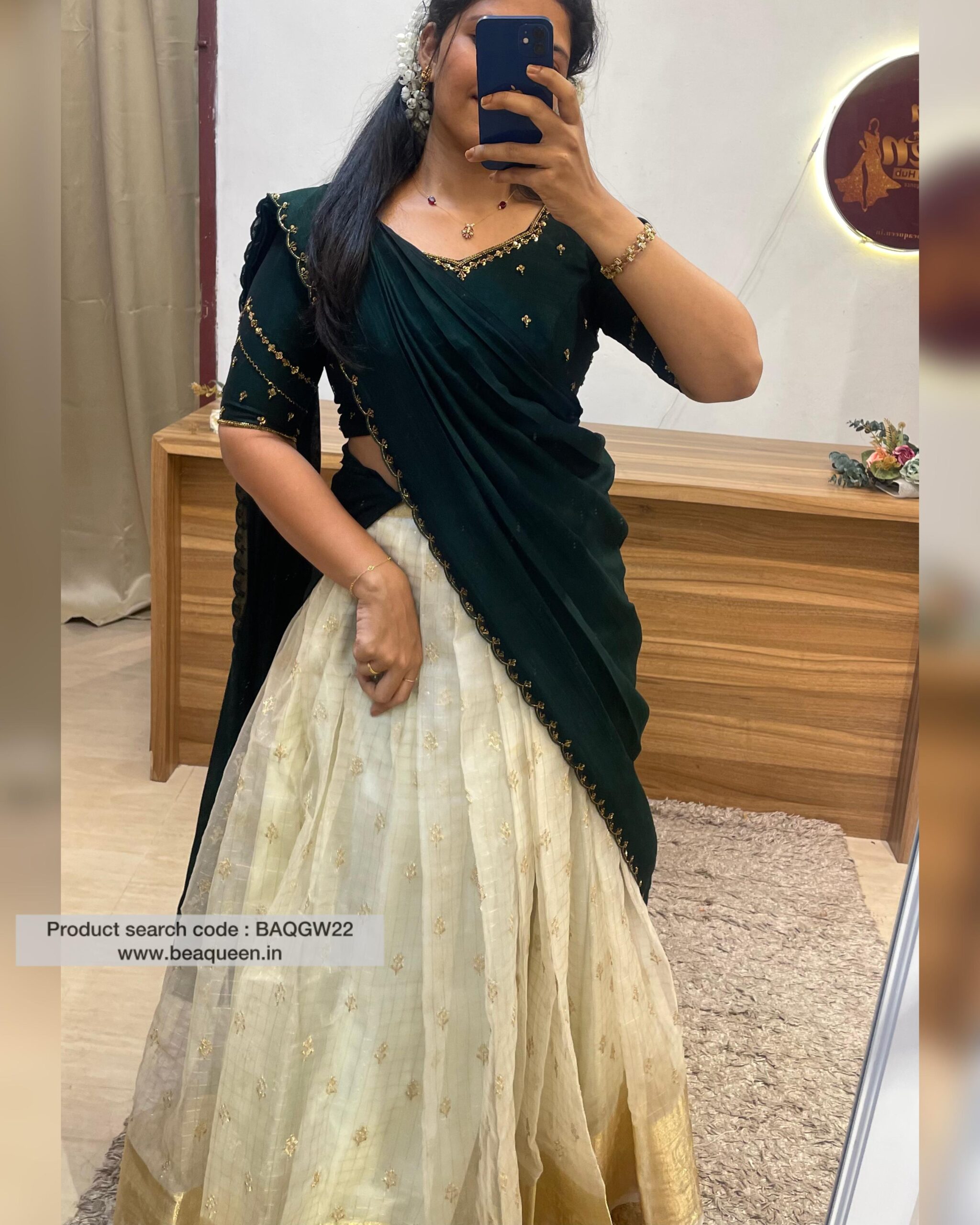 TRADITIONAL HALF SAREE IN BOTTLE GREEN – OFF WHITE COMBO-BAQGW22