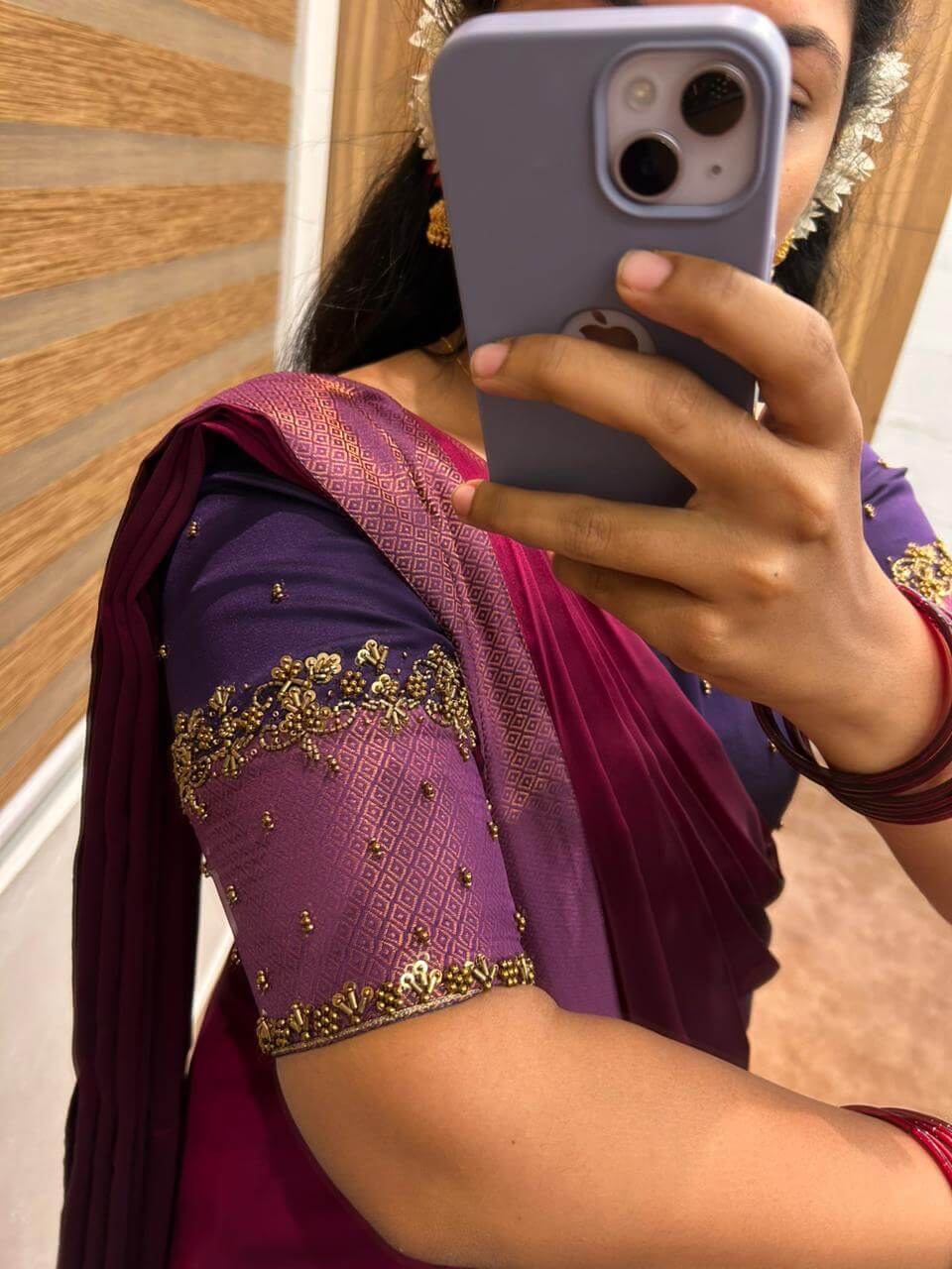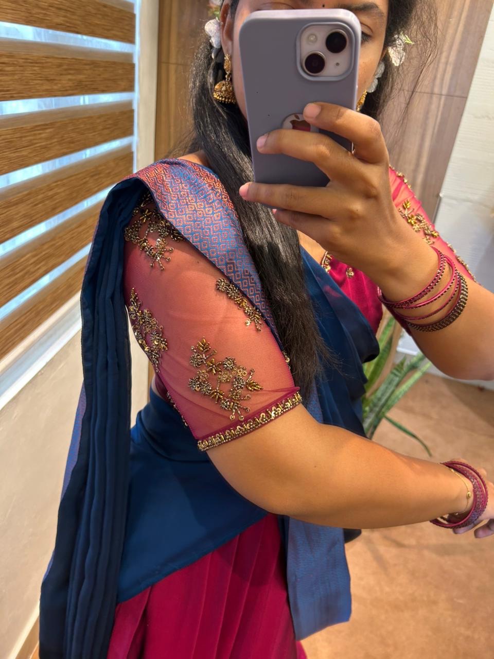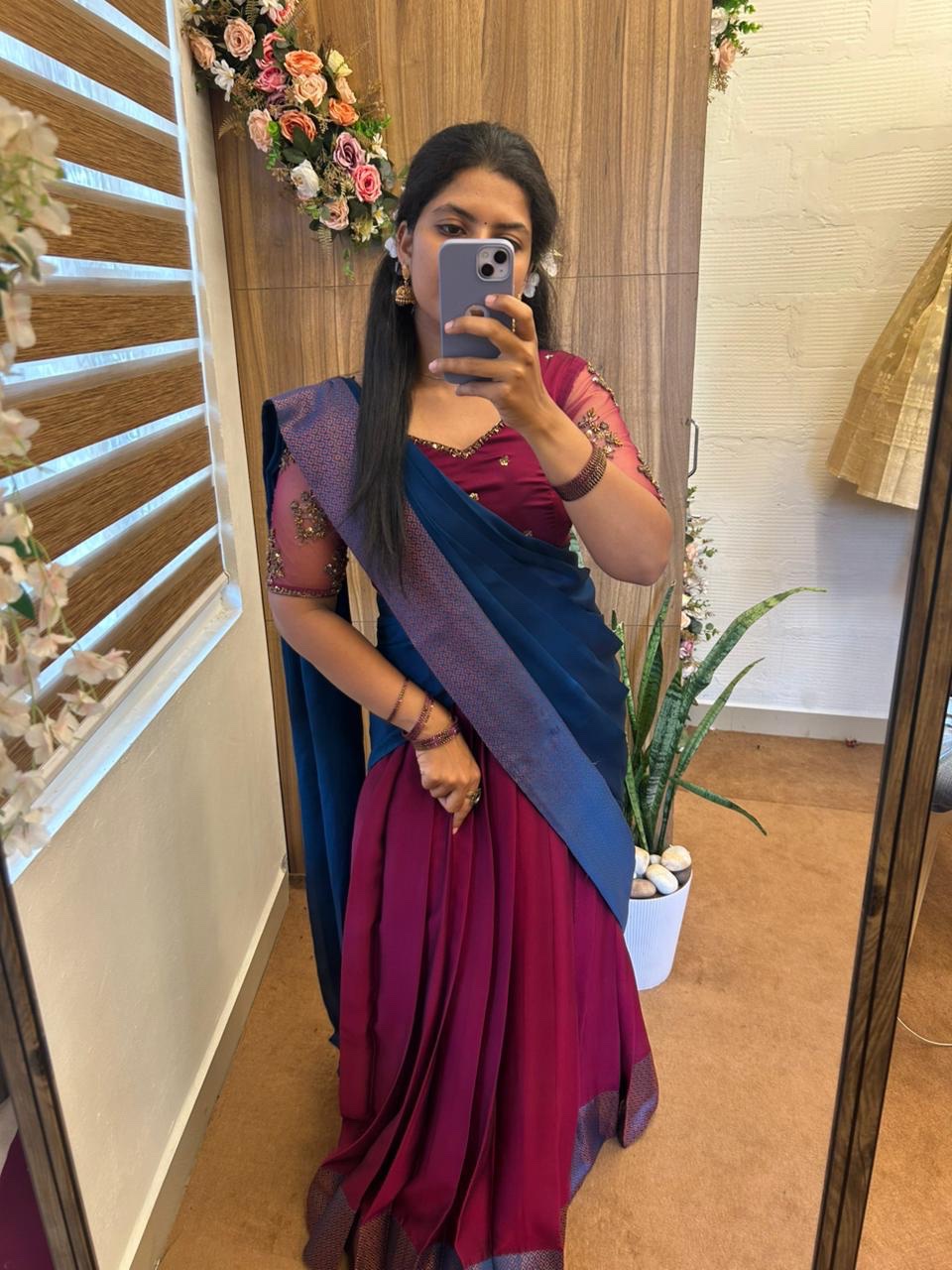 🌸TRADITIONAL HALF SAREE IN PURPLE WINE – PEACOCK BLUE COMBO 🌸