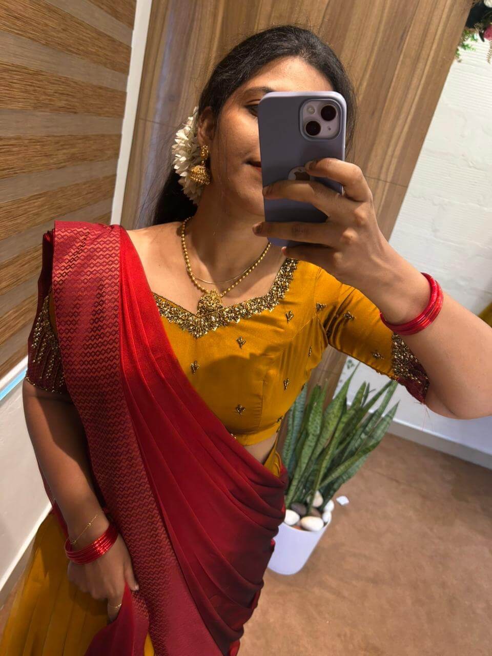 TRADITIONAL HALF SAREE IN GOLDEN YELLOW - RED COMBO-BAQYR18